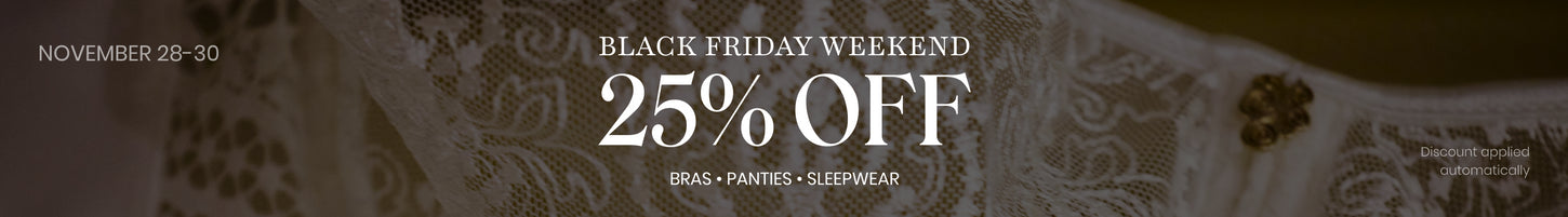 25% OFF applies to regular-priced Bras, Panties and Sleepwear only. Discount is automatically applied at checkout. Not valid on sale items or previous purchases. Exclusions may apply.