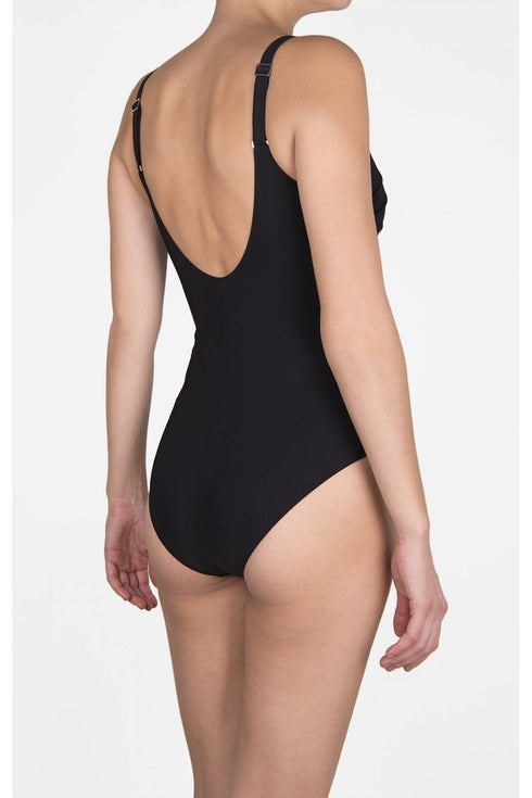 This elegant one piece provides support for fuller cups due to its light foam and underwire